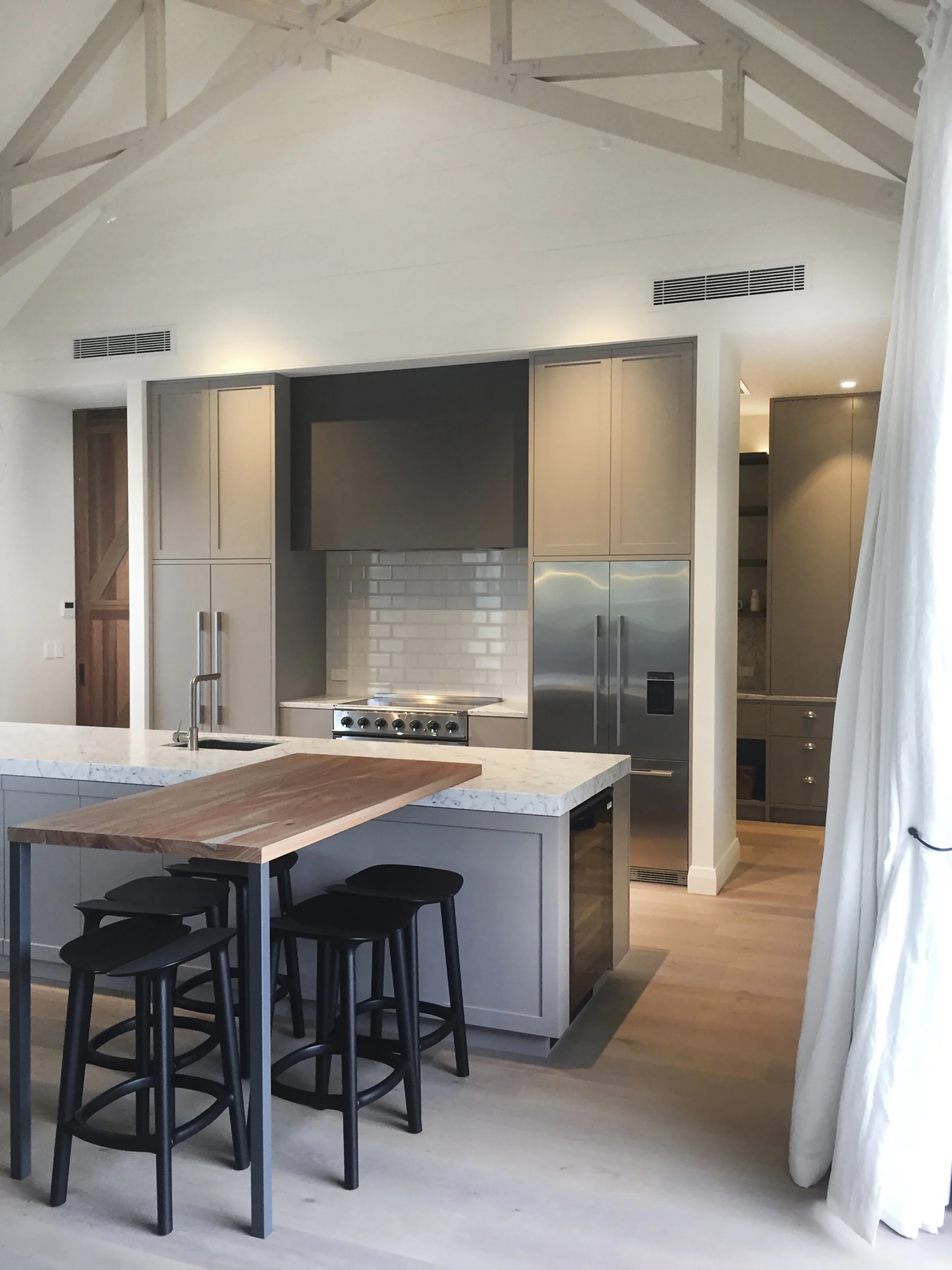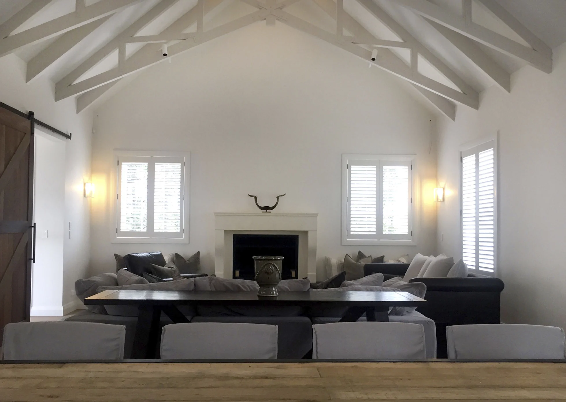Lodge style family living in Matakana with views of rolling green hills. The french barn design balances aesthetic elegance with liveable luxury complementing the clients lifestyle with means to entertain and escape.