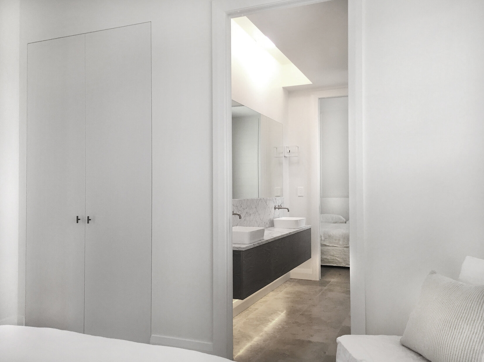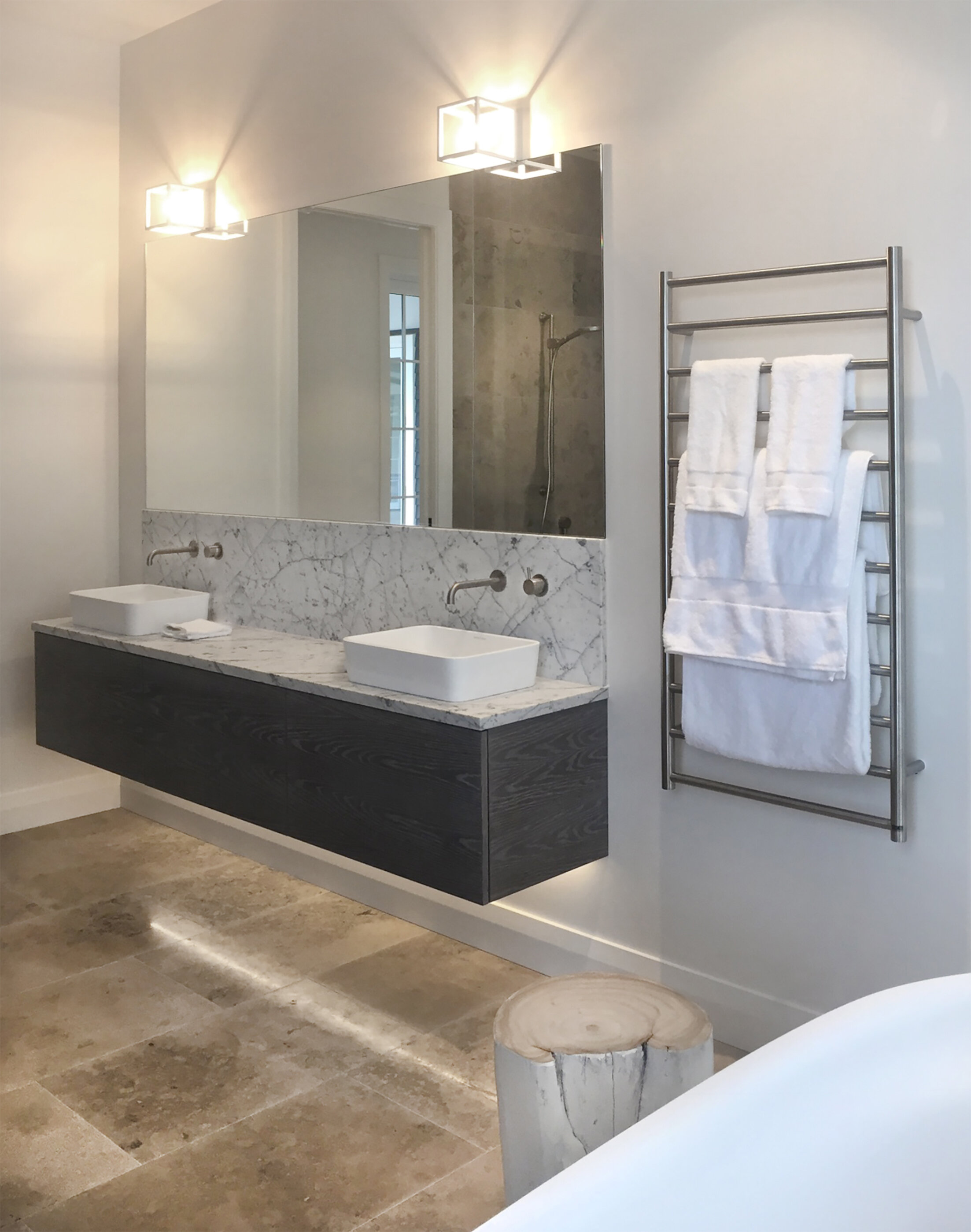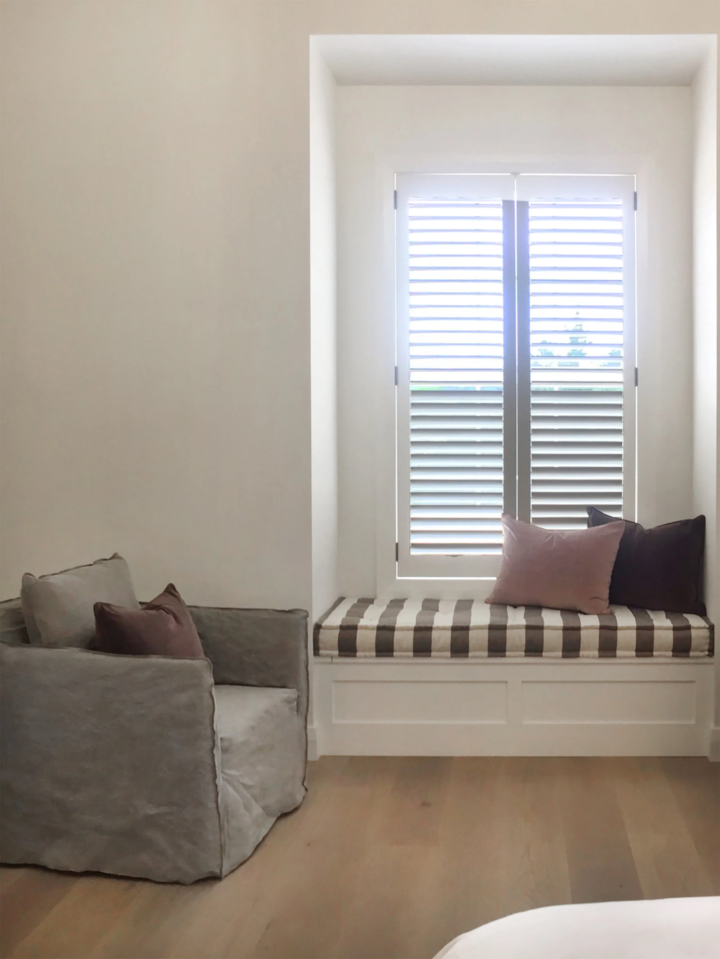 Duck Creek was designed and executed with careful attention to detail. Custom-designed and manufactured features include the large kitchen and scullery, ensuites, open fireplaces along with the wall panelling, joinery and barn doors. The lodge is sensitive to the client’s brief with a tailored flooring and lighting plan, as well as colour scheme with detailed shell pink trusses. Carefully curated antique and bespoke furniture create a sense of establishment while cushions with a custom Duck Creek Lodge monogram (DCL) designed in-house add a personal distinction and featured throughout the lodge.